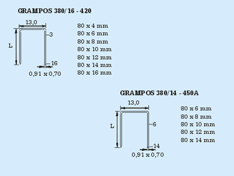 Esta linha é utilizada na fabricação de mobílias estofadas, cadeiras, armários, auto-falantes, mobílias de vime e na indústria automobilística. Oferecemos diversos comprimentos de pernas de grampo para cada aplicação específica. Para sua aplicação, indicamos o uso dos Grampeadores BeA 380/16 – 420 e 380/14 – 450A.