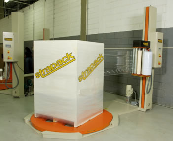 Máquinas para envolvimento ou unitização de cargas paletizadas com filme stretch